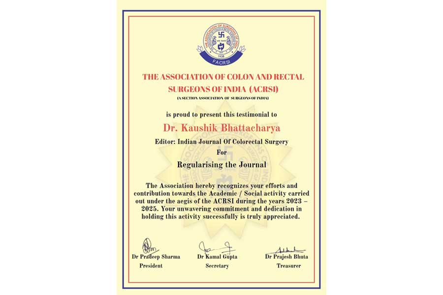Citation of Dr Kaushik Bhattacharya MS DNB MNAMS FAIS FACS FRCS (Glasg) FRCS (Edin)